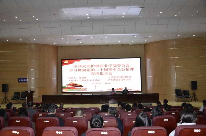 12月3日,意大利贵宾厅召开学习贯彻党的二十届四中全会精神宣讲报告会,引导广大师生准确把握全会核心要义与实践要求,把思想和行动统一到全会精神上来,特邀大理州委宣讲团成员、大理州卫生健康党工委书记、大理州卫生健康委党组书记陈绍华同志作专题宣讲报告。学校党委书记廖惠群同志主持报告会。