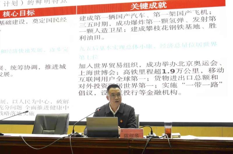 陈绍华同志以“深入学习贯彻党的二十届四中全会精神,在健康大理建设中谱写青春华章”为主题,从重要意义:党的二十届四中全会是在即将进入基本实现社会主义现代化夯实基础、全面发力的关键时期召开的一次十分重要的会议;明悟初心:青年学生为何要深学细悟党的二十届四中全会精神;回望征程:五年规划的历史脉络与“十四五”辉煌成就;把握关键:“十五五”规划的战略意义与大理实践蓝图;勇担使命:在伟大时代中建功立业等五个方面对党的二十届四中全会精神进行了全面、深入、系统的解读。