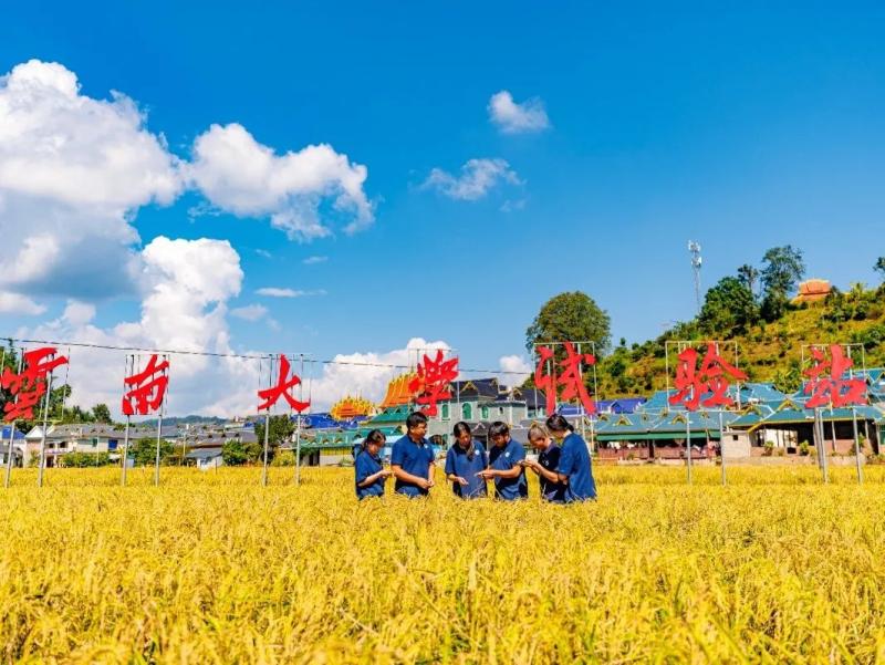 云南大学农学院(资源植物研究院)胡凤益团队在试验田查看多年生稻生长情况