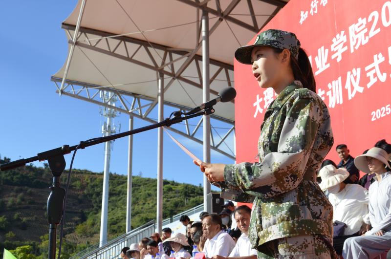 大理市人民武装部副部长祖延安作军训结训讲话。他对同学们在军训期间的优秀表现给予高度评价,并鼓励大家把军人作风延续到今后的学习生活中去。教师代表贺政刚、2024级老生代表周烨同学以及2025级新生代表郑琳霞分别代表师生发言,表达了对新学期的期待、对大学生活的展望以及对未来的坚定信念。