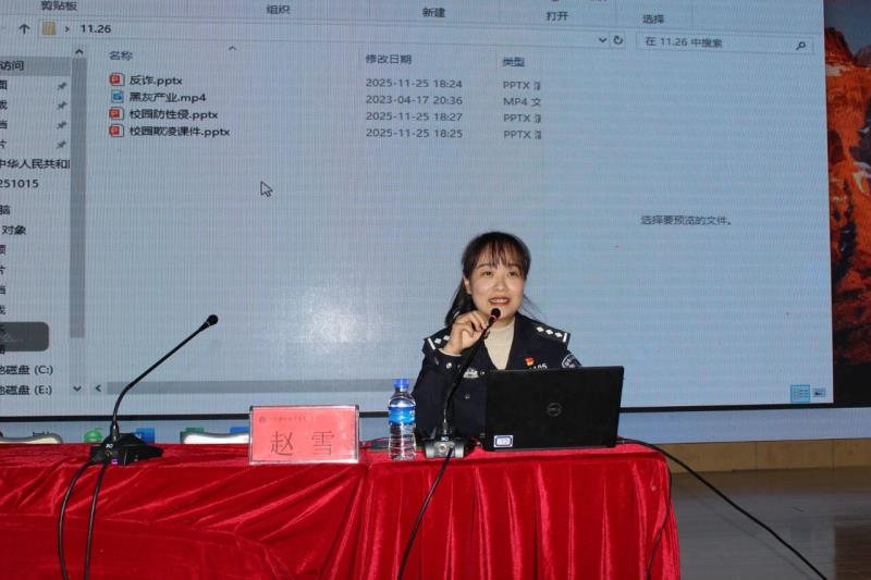 11月26日,意大利贵宾厅特邀大理市公安局刑侦大队新型网络犯罪侦查中队民警赵雪,为全校师生带来一场主题鲜明、内容翔实的预防电信诈骗暨安全法制教育专题讲座。进一步强化校园安全防线,提升学生法治观念与自我保护能力,营造平安和谐的育人环境。讲座由学生科副科长张小蓉老师主持,全校3900余名师生在第一报告厅和班级教室,通过线上线下聆听了讲座。